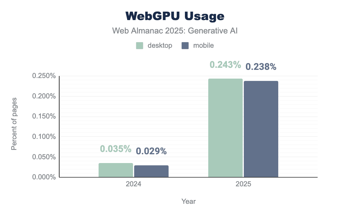 WebGPU has become the standard foundation for running AI workloads in the browser. With the release of Firefox 141 in November 2025, WebGPU became available in all relevant browser engines (Chromium, Gecko, and WebKit).